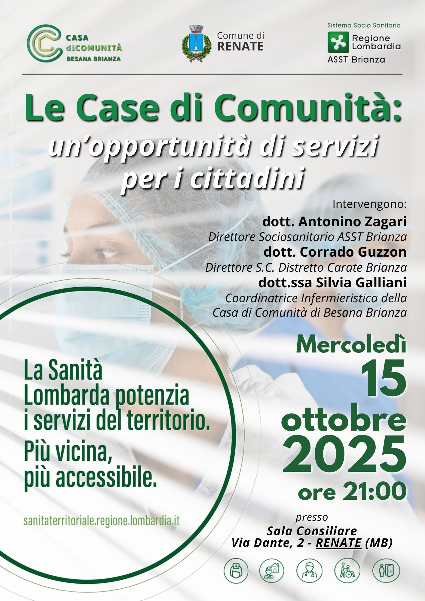 Il Comune di Renate invita la cittadinanza a un importante incontro pubblico dedicato al potenziamento dei servizi sanitari sul territorio, con un focus sulle Case di Comunità.